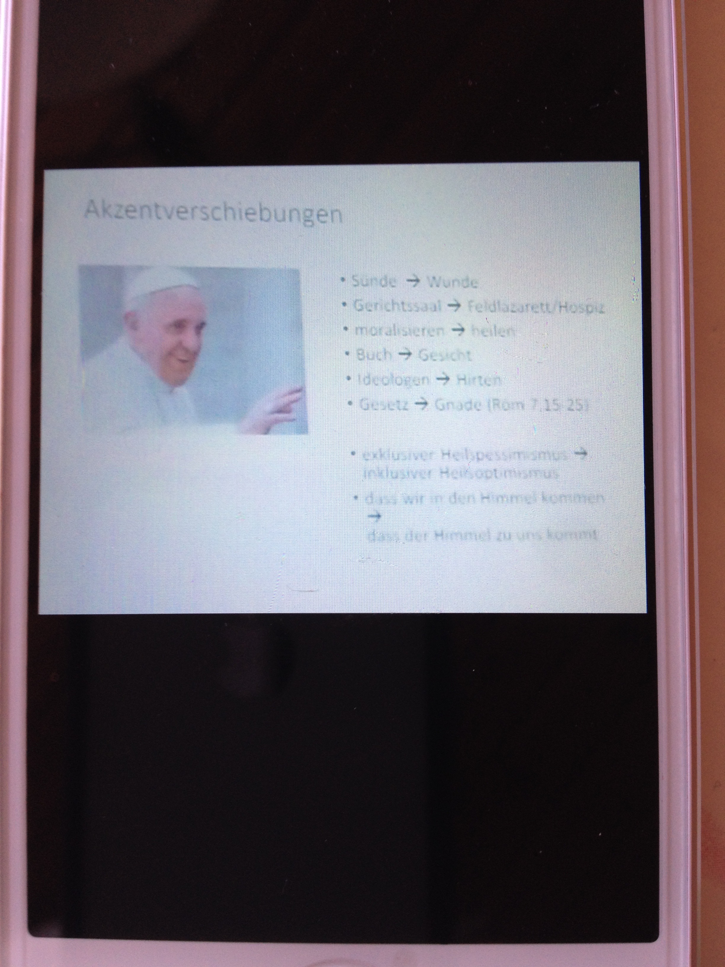 Vor ca. 2 Wochen trafen sich Vertreter von unseren Kirchengemeinden zum sogenannten Diözesanen Entwicklungsprozess. Bei bisherigen Treffen ging es meist um „Altes loslassen“, „offen sein für Veränderungen“ etc., aber nichts Konkretes. Diesmal wurde bei dem Treffen eine Folie aufgelegt, die zumindest bei einigen Teilnehmern für Stirnrunzeln sorgte. Nach wenigen Minuten wurde diese projizierte Folie wieder ausgeblendet. Es gab dazu auch kein Material.... Eine aufmerksame Kirchengemeinderätin war jedoch schneller und hielt den Inhalt dieser Folie mit ihrem Handy fest. Eine Frau aus meiner Gebetsgruppe, ebenfalls Kirchengemeinderätin, war dort anwesend und kann die Echtheit dieser Aufnahme bestätigen.