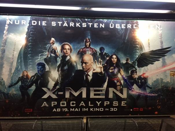 Auf dem Zug Peron, beim Heimweg sah ich dieses Plakat (Kinostart 19.05.16). Ich fand den Film zuerst faszinierend, doch nun — da ich mehr weiss — schockt es mich. Hollywood verpackt viele Messages in Filmen und hier ist das Ende nicht zu übersehen „Nur die Stärksten überleben“, heisst es da. Die Raketen im Hintergrund sind auch nicht zu übersehen.